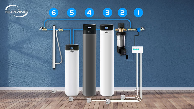 Eliminate the problems caused by hard water in your home with iSpring water softener system. Say goodbye to mineral buildup, stiff laundry, and frizzy hair. Protect your plumbing and appliances from corrosion. Experience the benefits of softer water. Contact us for a tailored solution.